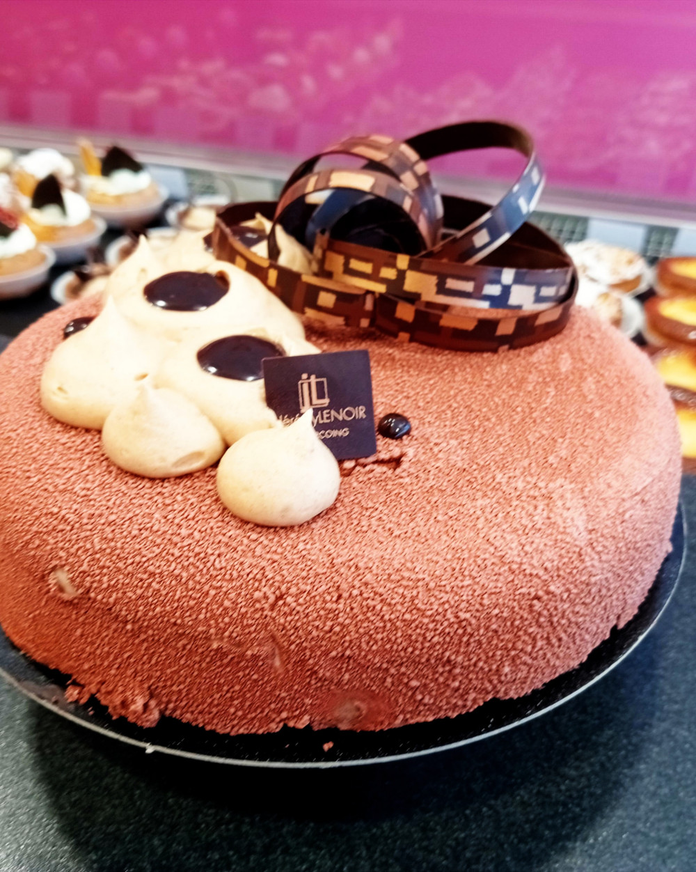 Biscuit aux noisettes, mousse au chocolat, mousse praliné